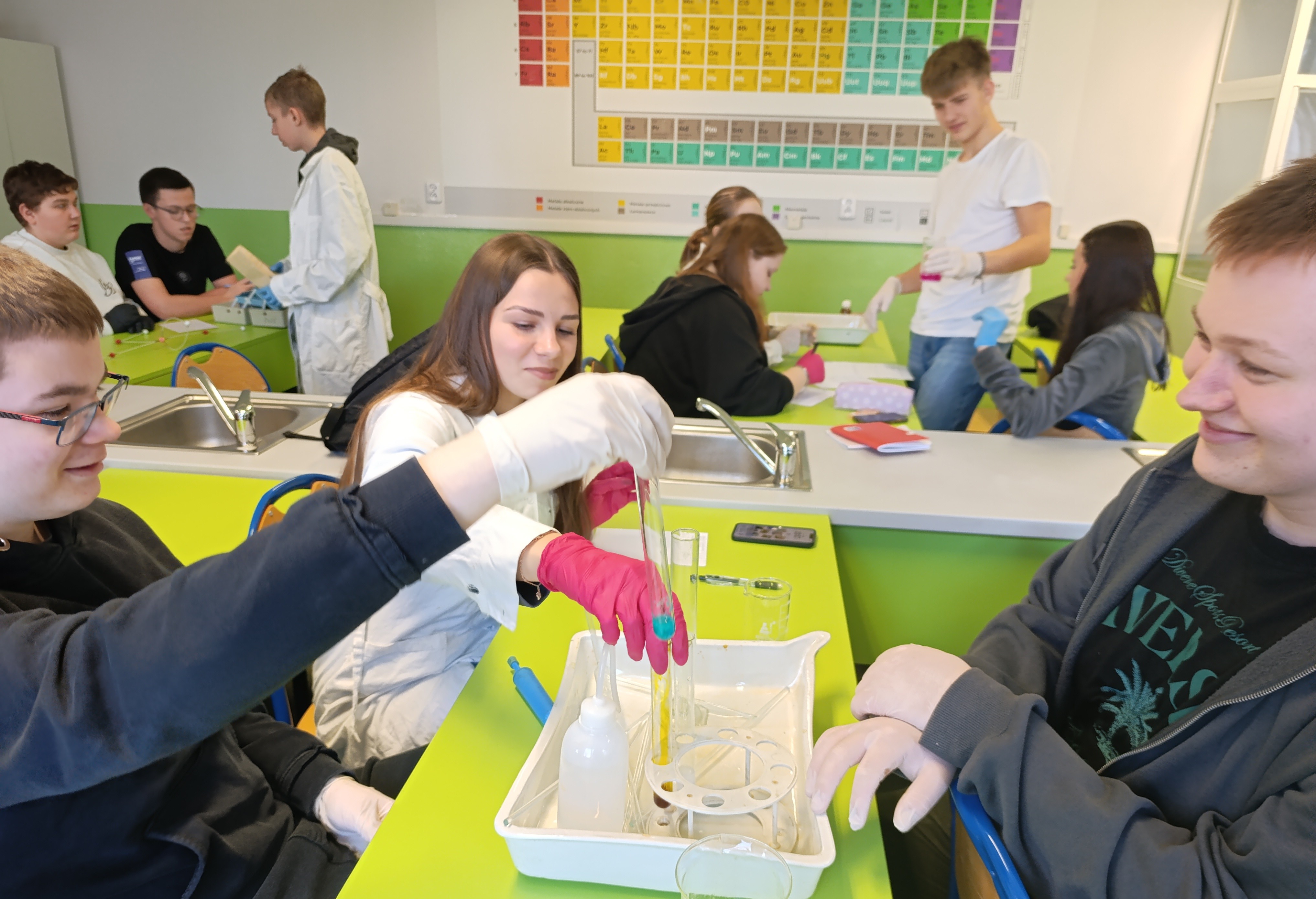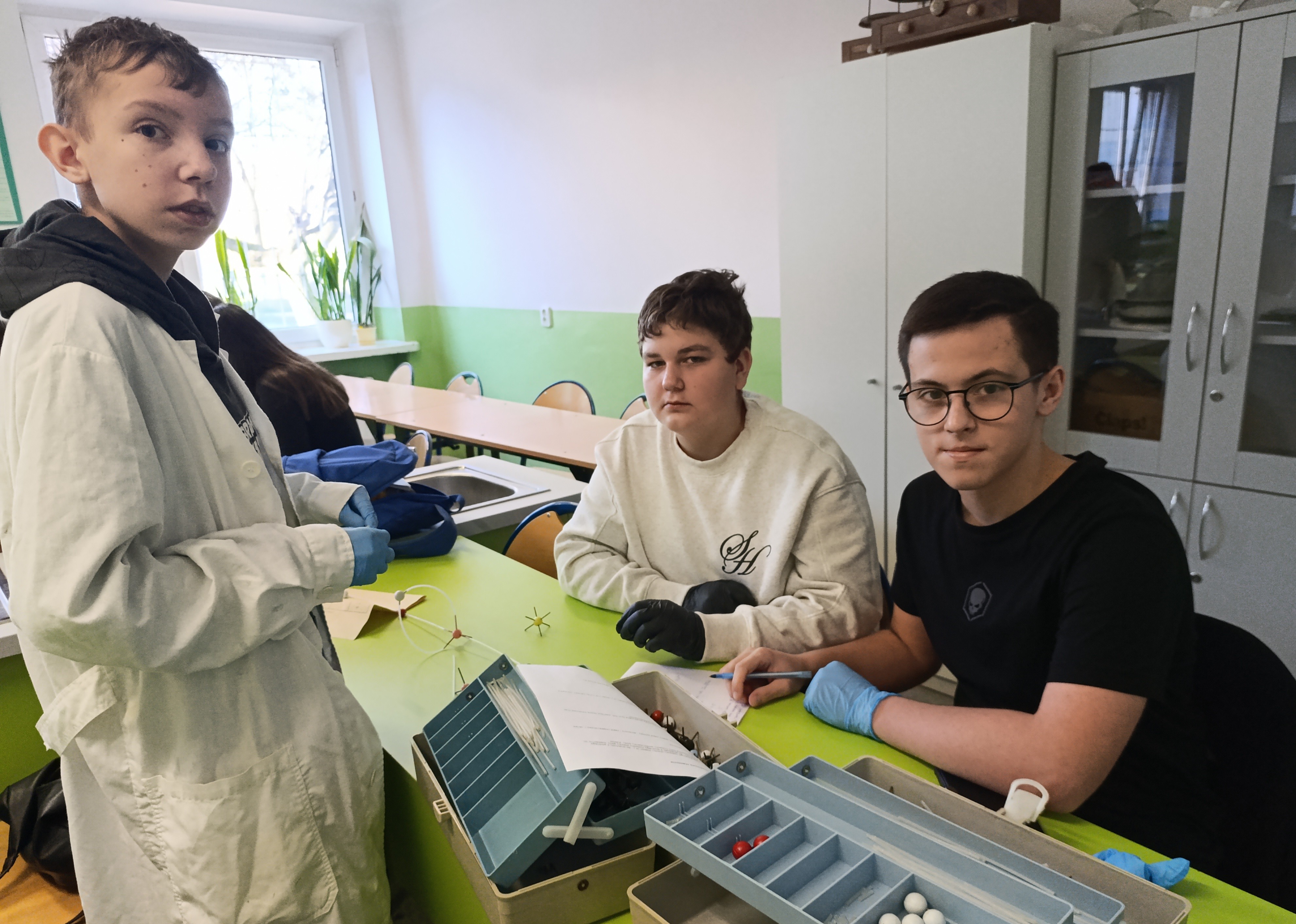 ,,Z okazji Dnia Ziemi uczniowie przygotowali doświadczenia chemiczne z udziałem soli i hydratów ,które pozwoliły zaprezentować ich właściwości ,reakcje, zastosowanie oraz znaczenie w środowisku naturalnym.Tworzyli również modele cząsteczek soli z wykorzystaniem zestawów modeli kulkowych atomów .''